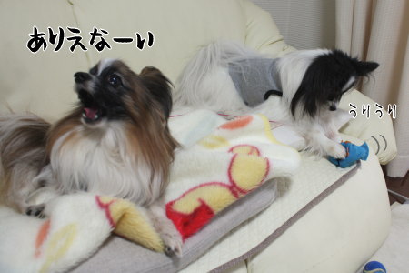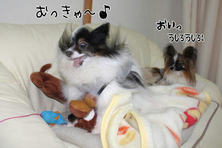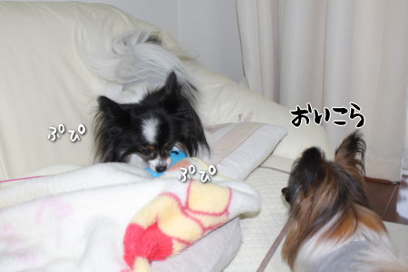 走ったりピコピコ鳴らしたりして騒動するもので、お昼寝中の風ちゃんが