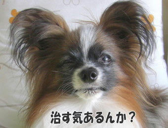 今日は昨日よりはマシで、吠える時なんかに瞬間的に目が開いてたりしてました(^w^) 傷があるって、やっぱり痛いのでしょうね・・・涙とか目ヤニを拭こうとすると、触られるのをイヤがります。とにかく目を休めて早く治してあげたいです! あらし、たまにこんな顔になってしまうんですよ~(^.^;