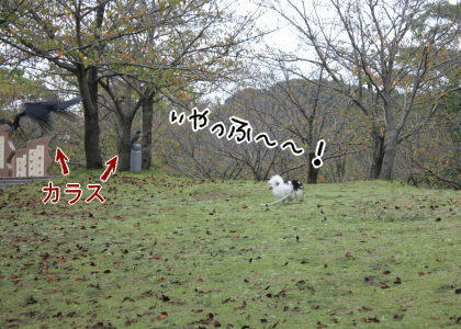 ここは落ち葉がすごいので、いつもの広場に移動して再び放牧~