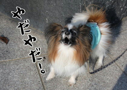 抱っこに応じるんですよ。でも今回も抱っこ拒否!そして吠え吠え!