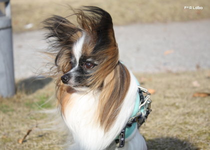 風ちゃんにカメラを向けている時、落ち葉が舞い上がるほどの強風が!