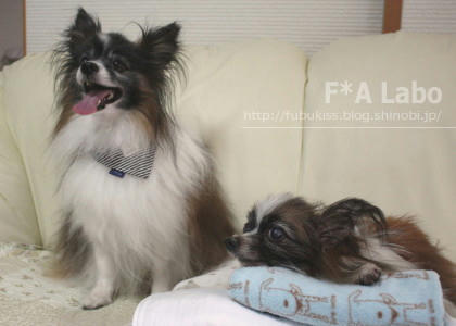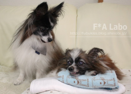 風ちゃんオスワリ持続できないから、タオルで底上げしてセッティング~
