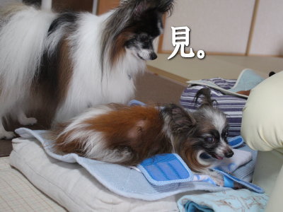 仕方なく見るだけでガマンのコハクさんwお行儀良く待ってる姿に心打たれます。