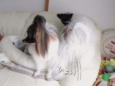 風ちゃんの尻の辺りにママがこそっと忍ばせた“あめちゃん”(@´゚艸`)