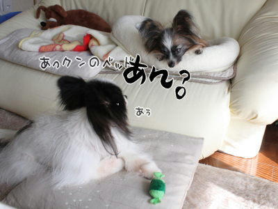 ママのイタズラに気付いていない風ちゃんは、あらしめオレ様のベッドを狙っとるな!?