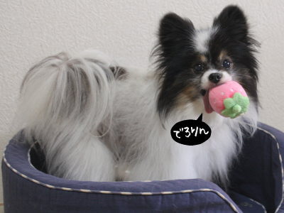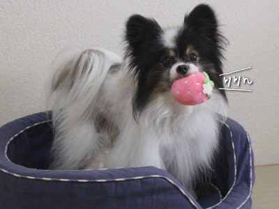 鈴の音に反応するのか、はたまた転がるイチゴが愉快なのか…