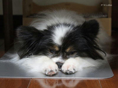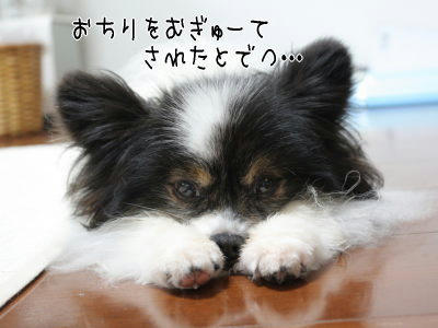 病院に連れて行かれ恐怖の診察台で肛門腺を絞られ凹む主役(^m^)