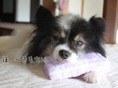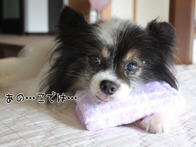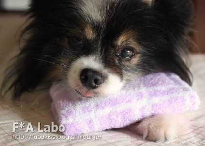 風ちゃんのお目目を冷やす用の、タオルで包んだやつですね。