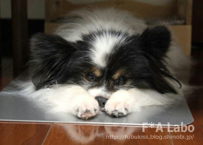 いまだあっクンが苦手な冷え冷えピローをがっつり堪能する風父ちゃんの図w