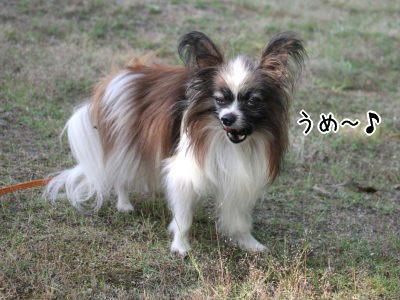 公園でのボーロにご満悦な風ちゃんの図。