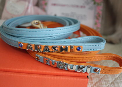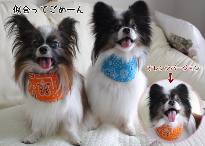 まるみさんのリードと同じように風吹にオレンジ、あらしにブルーを着けてみた♪