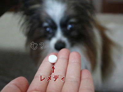 レメディをこの缶から出すことで、おやつだと思い込ませる作戦ですよ。