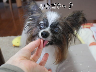 躊躇なくかぶりつくっ!!…ママの指もろともね(アイタタ!)