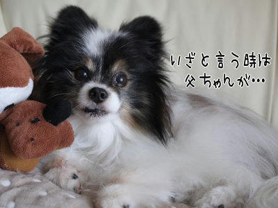 あっクンがどんなに吠えようと、ママ膝で小さくなって気配を消しとるじゃないか。