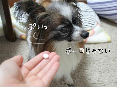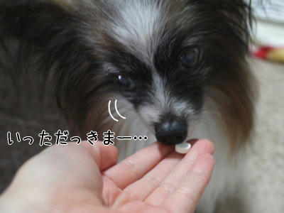 さぁ今日もチョッパー缶を利用して「薬じゃないよ~ボーロだよ~美味しいよ~」