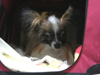 フラフラしながらもキャリーの中で寝る態勢を決めかねています。