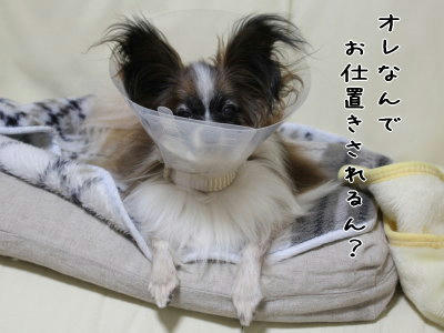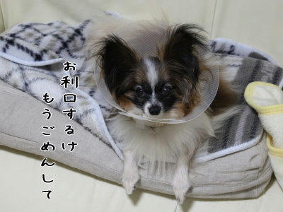 風ちゃんの、人生初となるエリカラ(エリザベスカラー)を装着し帰宅。