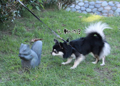 警戒しつつもおシッポは下がってないので大丈夫(´゚艸゚)