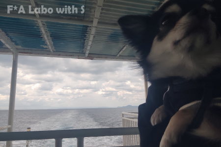 少々オネムではありますが、フェリーの汽笛にも動じず余裕!