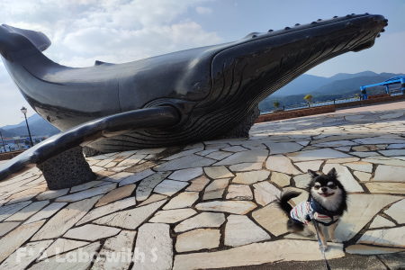 笑顔で「またね!」とバイバイして…有川港のクジラと記念撮影♪