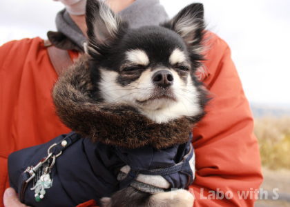 エリのモフモフ感と厳しいそうに見えるお目目(ほんとは寒くて眠かったのね)でそう見えるのかちょっとどこかの監督さんみたいで…