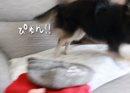 持ち逃げ後、ぶん回したり噛み付いて引っ張ったり…