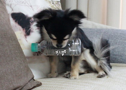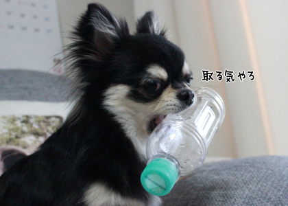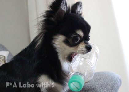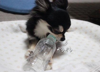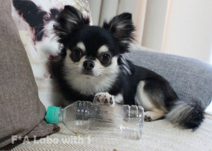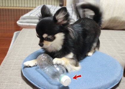 願い叶ってペットボトルで遊ぶことを許可された颯天さん(11ヶ月)