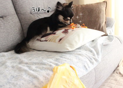 そのまま包みごとソファに持ち逃げした颯天さん、