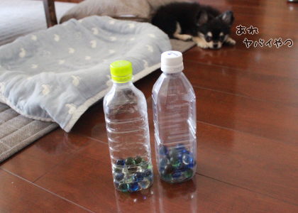 ペットボトルに入れたビー玉がジャラジャラ鳴る