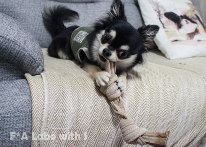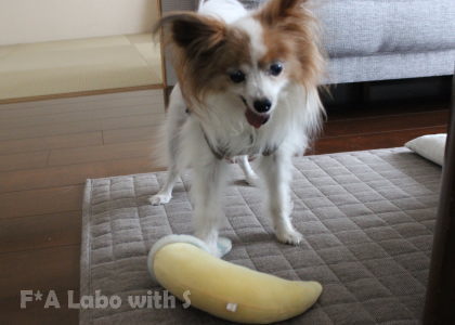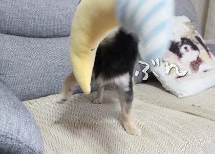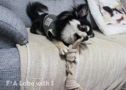 牛革製だそうで、夢中で噛みちぎってました(^-^;)
