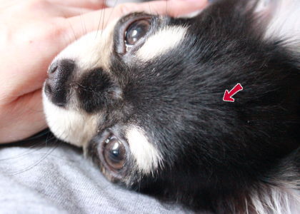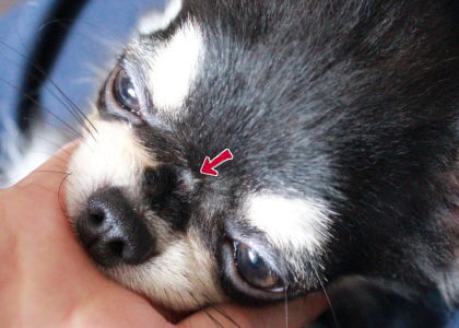 つい何日か前にもおでこ(↓矢印の辺り)に