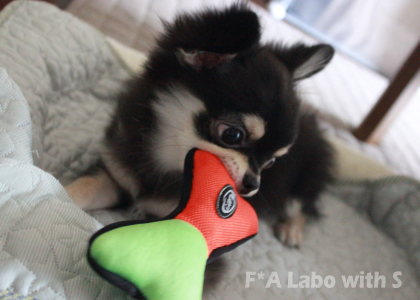 (木のおもちゃも今は喜んでカミカミしていますけどね♪)