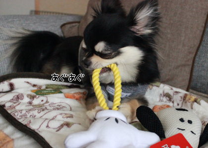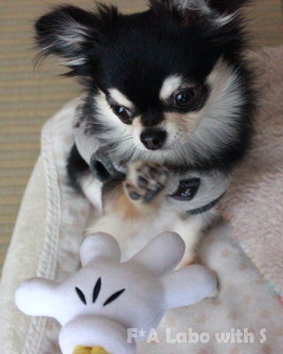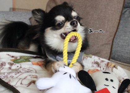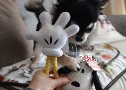 スヌーピーとミッキーの手、交互に遊ぶと言う