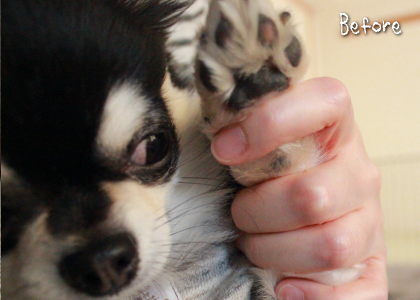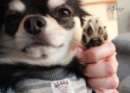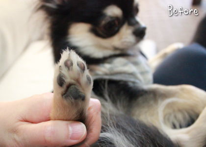 お散歩後に拭き拭きしただけの状態(白っぽくカサカサ!)