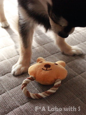 よもちゃんちでの預かり保育でもらったくまさんロープトイ♪