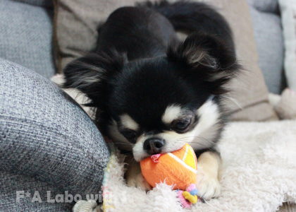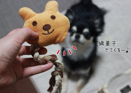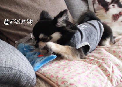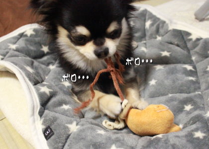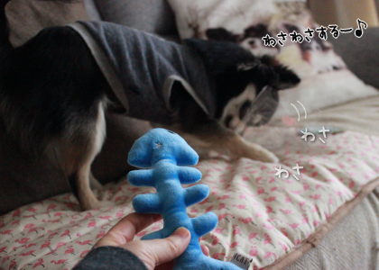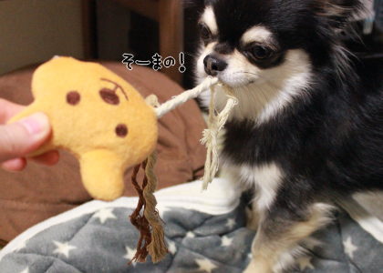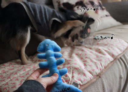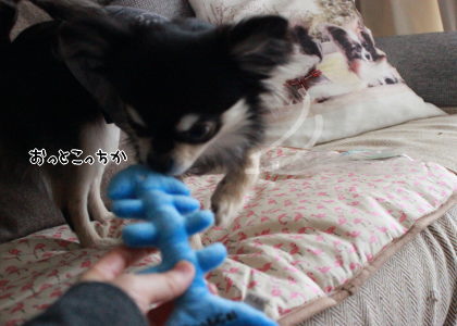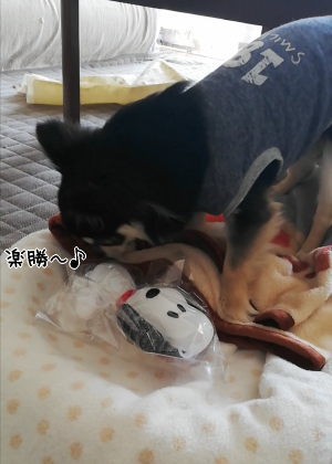 おもちゃ本体そっちのけで別の何かにジャレている。