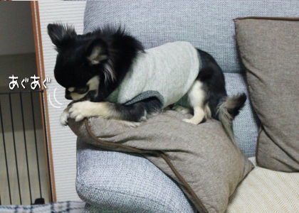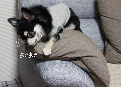 クッションの角をガムの如く噛み散らかしているではないですか(`Д´;)