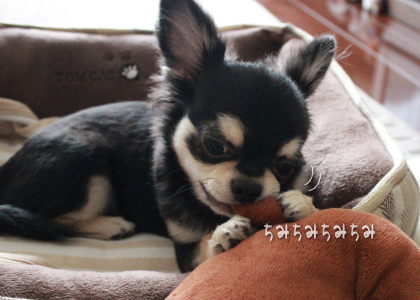 歯の生えかわり期まっただ中なので、歯が痒いのでしょうね…
