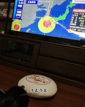 こちらは台風情報に見入る昨夜の颯天さんです。