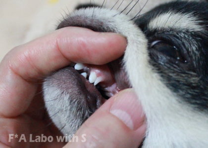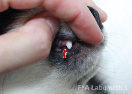 右の乳歯(二枚歯だった犬歯)がない!!