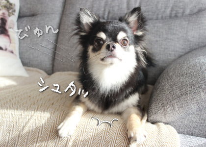 ドライヤー直後のふんわり背中がパピーコートっぽい(*´Д`*)