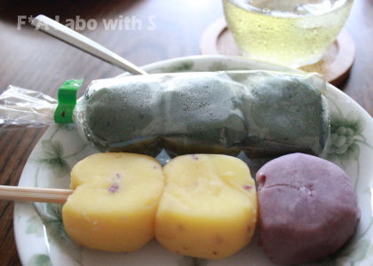 お茶うけは串団子(お芋とよもぎ)♪