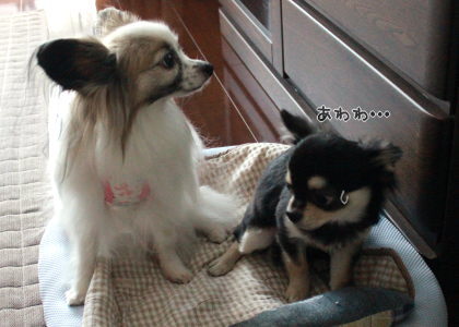どうでようね~~パピヨンと…思ってるんでしょうかw思いっ切りチワワの性質丸出しですけどねw