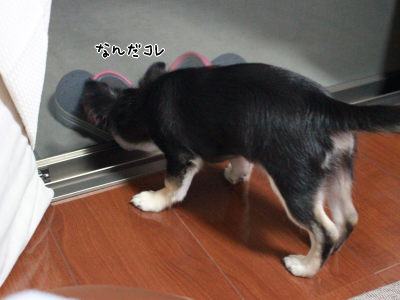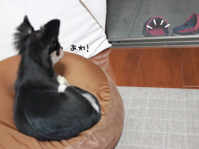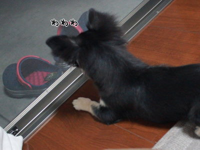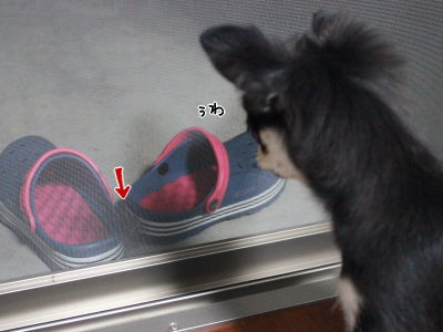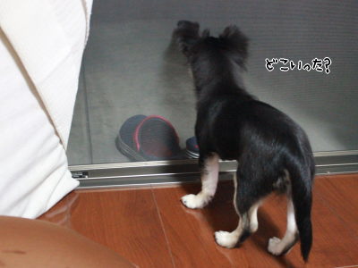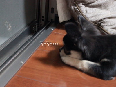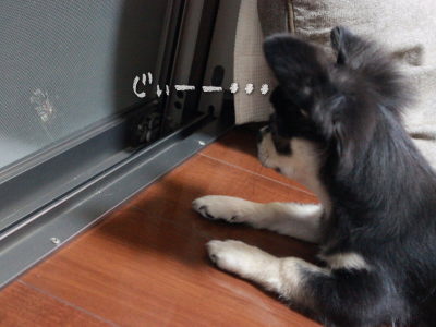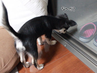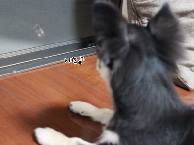 颯ちゃん頻りに網戸の向こうを気にしています。