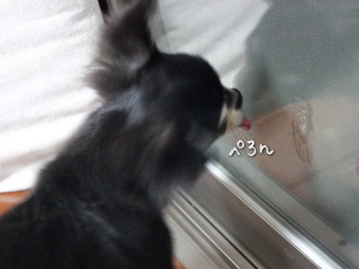 さっきはジャマだった窓が開き二人を隔てるのは網戸のみw