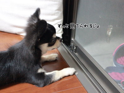 セミさんは窓と網戸を隔てた向こう側にいるので