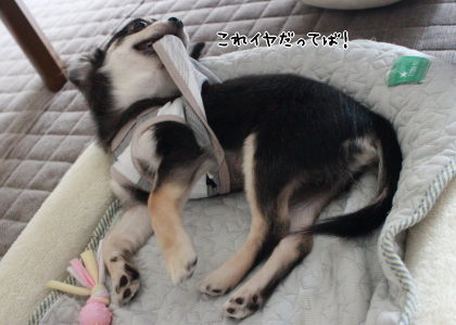 颯天が、おかぁの足にアタックしているひとコマなのです。