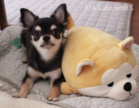 颯天ハウスの友、柴わんこさんと並んではいポーズ♪