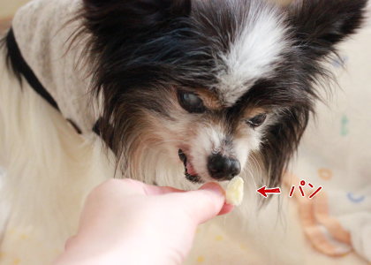 つまんだフードを鼻先に持って行くと…