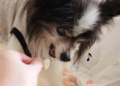 おやつは美味しく食べてくれていたあっクン。